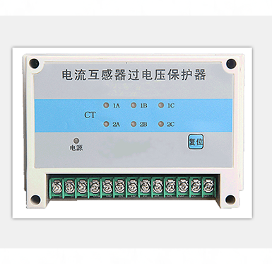 組合式電流互感器二次過電壓保護器主要用于各種CT二次側(cè)的異常過電壓保護。保護器連接于CT二次繞組兩端,正常運行時泄露電流極小,呈高阻狀態(tài);當CT二次回路開路或一次繞組出現(xiàn)異常過流時,二次繞組產(chǎn)生的電壓遠遠高于正常運行電壓,此時保護器迅速動作而短路,面板上顯示故障的部位,并有無源接點信號輸出。故障排除后,按手動復(fù)位按鈕,電路恢復(fù)原狀態(tài)后又重新投入正常運行工作。